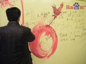 酒店醒目橫幅 恭迎嘉賓 繁忙的簽到區(qū) 客戶簽名留念 會(huì)場(chǎng)全景 公司領(lǐng)導(dǎo)致辭 嘉賓踴躍參答 百度客戶服務(wù)區(qū)域經(jīng)理張弦做精彩主題演講 圓聚 嘉賓代表祝福百度 百度十歲了 公司領(lǐng)導(dǎo)與百度領(lǐng)導(dǎo)共同吹熄許愿之燭 本土特色促銷禮品展示 百度客服齊唱“明天會(huì)更好” 會(huì)議后在一片歡聲笑語中結(jié)束,通過這次會(huì)議,將客戶與百度的距離拉的更近了,更是增強(qiáng)了客戶對(duì)百度信任。面對(duì)即將到來的2010年,百度仍將不負(fù)眾望,努力回報(bào)廣大客戶的支持與信任。相信眾多的中小企業(yè)也會(huì)繼續(xù)把百度當(dāng)做堅(jiān)定的長(zhǎng)久的合作伙伴,在新的一年里和百度一起蓄勢(shì)待發(fā),再創(chuàng)輝煌!